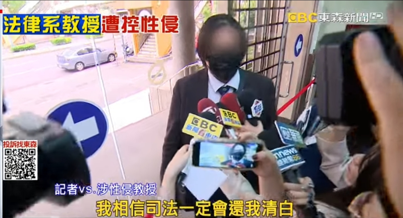 .涉性//.侵教授:「(有覺得自己被誣賴嗎,性//.侵女學生之後還會再教書嗎),我相信司法一定會還我清白,謝謝大家,(所以是否認嗎),司法會還我清白謝謝。