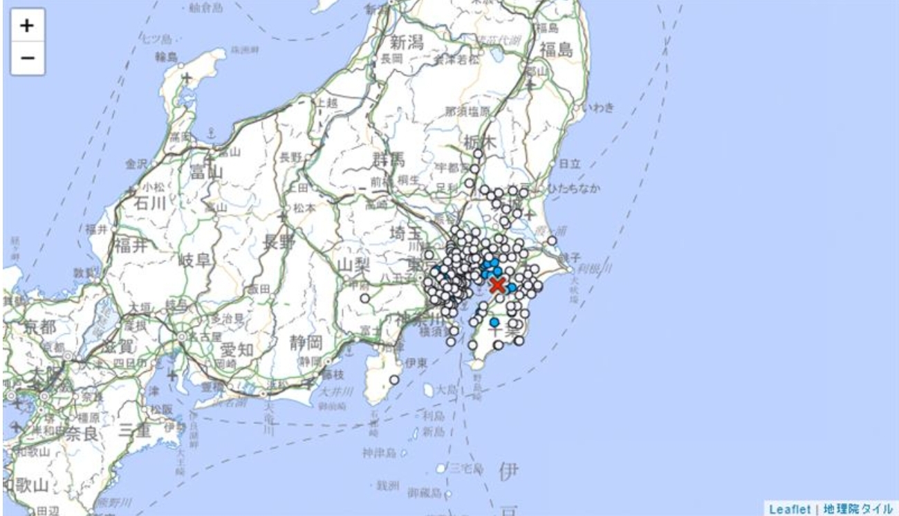日本氣象廳公布資料,第一波位在千葉縣的地震,芮氏規模4.1、震度2、深度70公里,東京都內多個行政區也能感受搖晃;第二波23點45分的地震,影響範圍則較小,芮氏規模4.1、震度1、深度60公里,震央在埼玉縣南部,感受到搖晃的區域,則是在鄰近的群馬縣。
